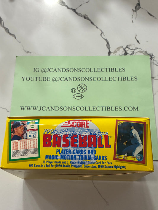 1990 Score Baseball Wax Box 36 Sealed Packs Bo Jackson Black & White and Frank Thomas RC Chase.